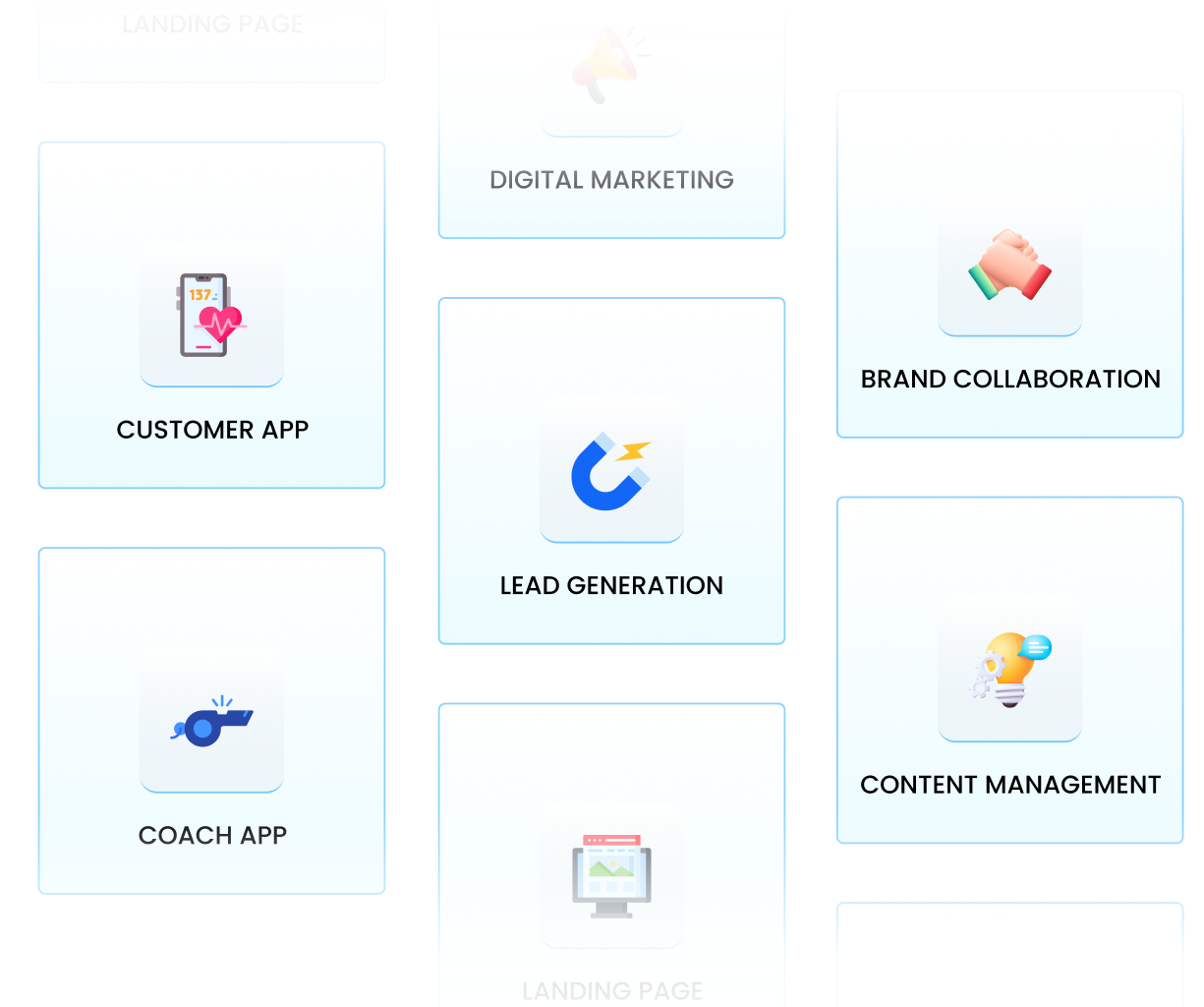 "Simplify daily operations" "Keep clients engaged" "Boost revenue streams" "Save time with automation" "Deliver branded experiences" "Track progress seamlessly" "Build strong client loyalty" "Expand business effortlessly" "Automate payments and bookings" "Grow with smart digital tools"